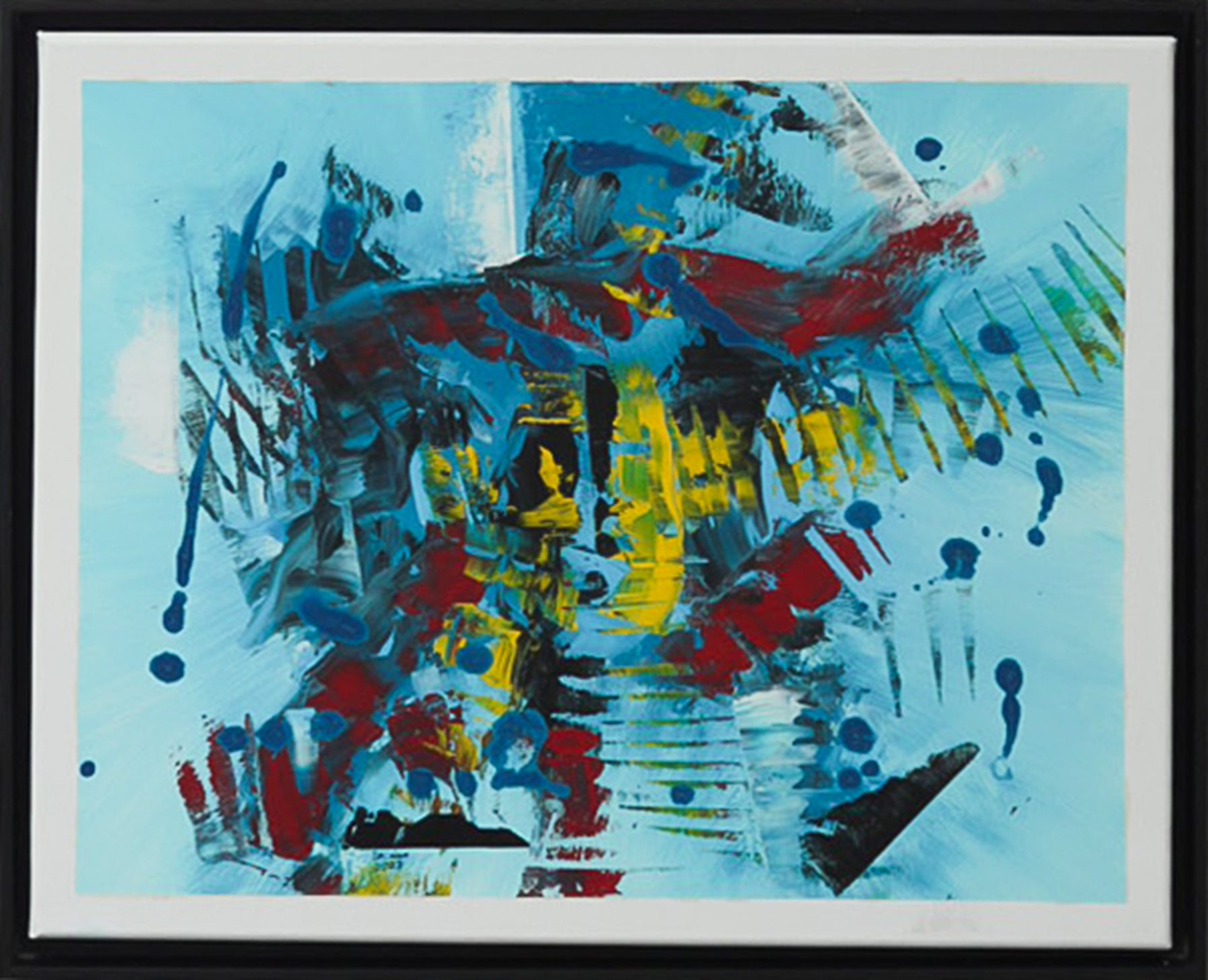 „Run Like Hell“ ist ein Gemälde voller Energie und Bewegung. Auf hellem Blau entfaltet sich ein Sturm aus kräftigen Pinselzügen in Rot, Gelb und Schwarz. Dynamische Linien und Farbspritzer erzeugen eine Bildsprache, die Geschwindigkeit, Chaos und Intensität gleichermaßen vermittelt.